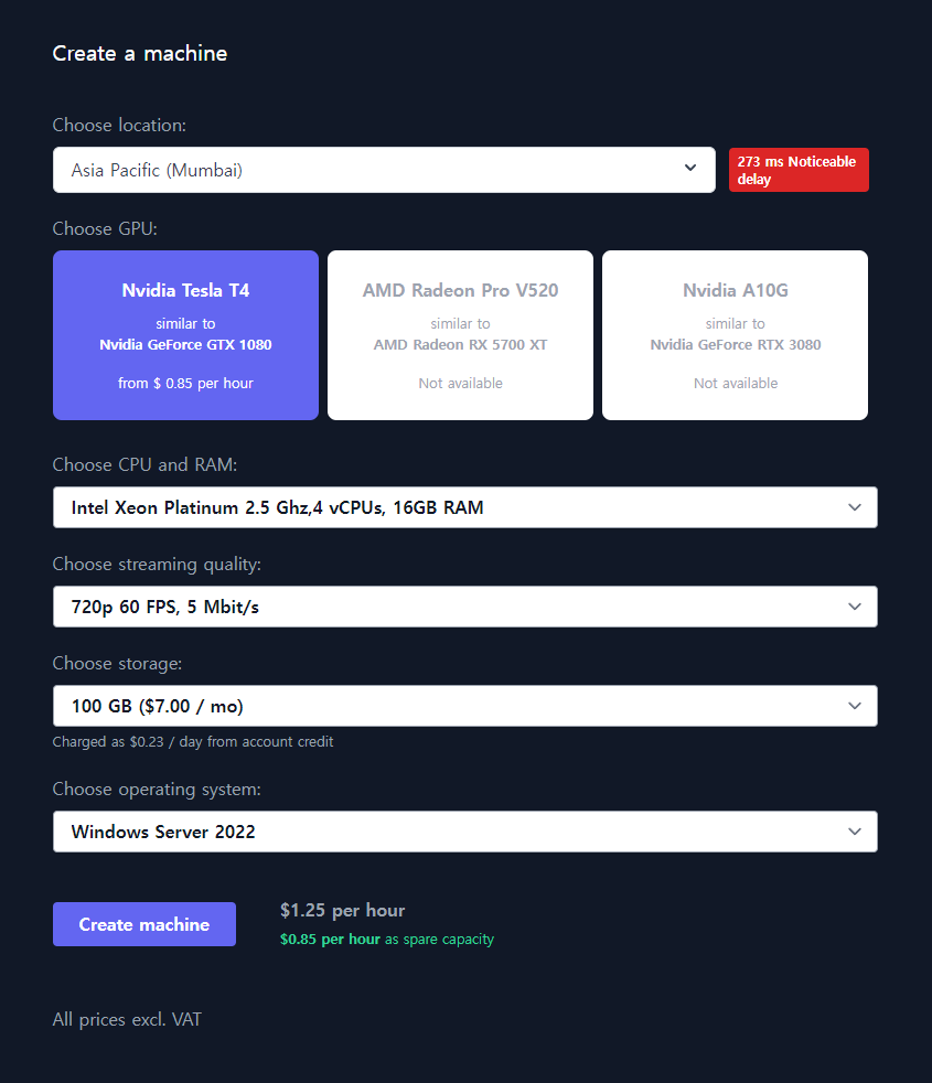 airgpu는 AWS를 이용한 서비스이다. 따라서 한국도 지원한다.