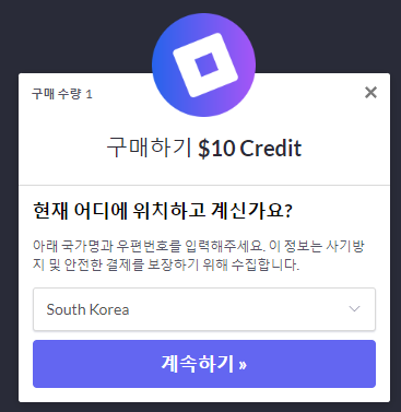 원하는 금액을 선택하고 Purchase를 클릭한다.