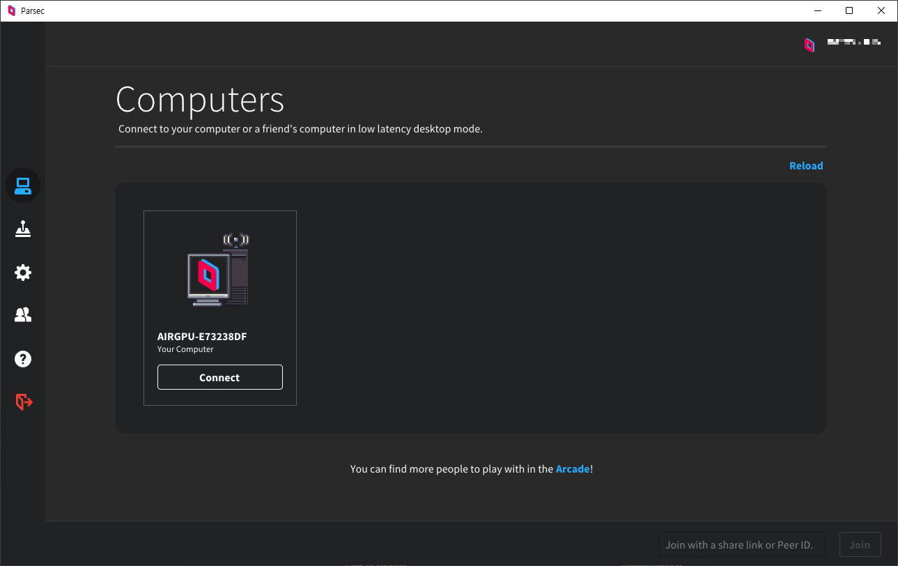 그리고 airgpu가 아닌 내 컴퓨터에서 Parsec을 실행한다.