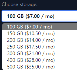 Storage는 하드 용량이라고 보면 된다. 요금은 위 사진과 같다.