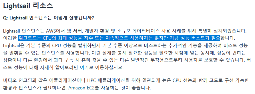 AWS Lightsail은 애초에 소규모 서버를 대상으로 서비스한다. 중대형 게임 서버를 위해 만들어진 서비스가 아니므로 이곳에 사용하면 심각한 성능 저하를 맛볼 수 있다.