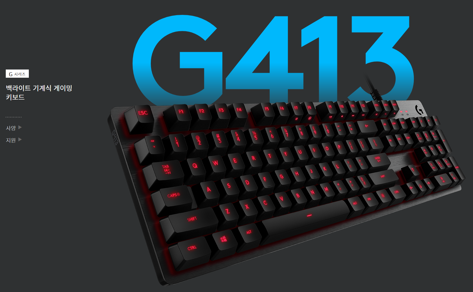 필자도 약 2년간 로지텍의 G910 키보드를 사용해봤으나 장기간 사용, 과격한 게이밍 환경에서 사용해보았으나 2년간 무리 없이 잘 지내주었다. 아마 같은 Romer-G 축을 사용하고 있으니 G413도 키에 문제가 생기진 않을 것이다.