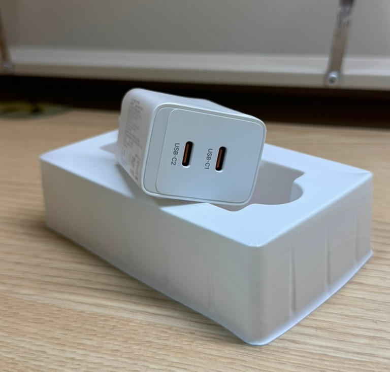 질화갈륨(GaN) 소재의 C타입 어댑터는 최대 47W 출력을 제공한다. 두 포트를 모두 사용하면 각각 27W와 20W의 출력을 제공한다.