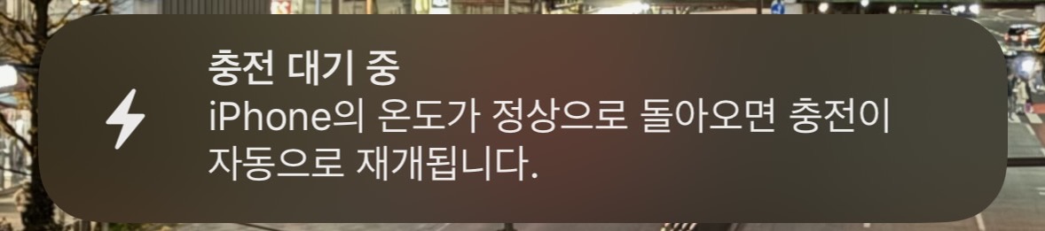 3시간이 지나 80%를 달성했지만, 그 시점부터 온도가 낮아지면 충전을 재개하겠다는 메시지가 떴다. 이후 1시간이 지나도록 충전이 되지 않았다.