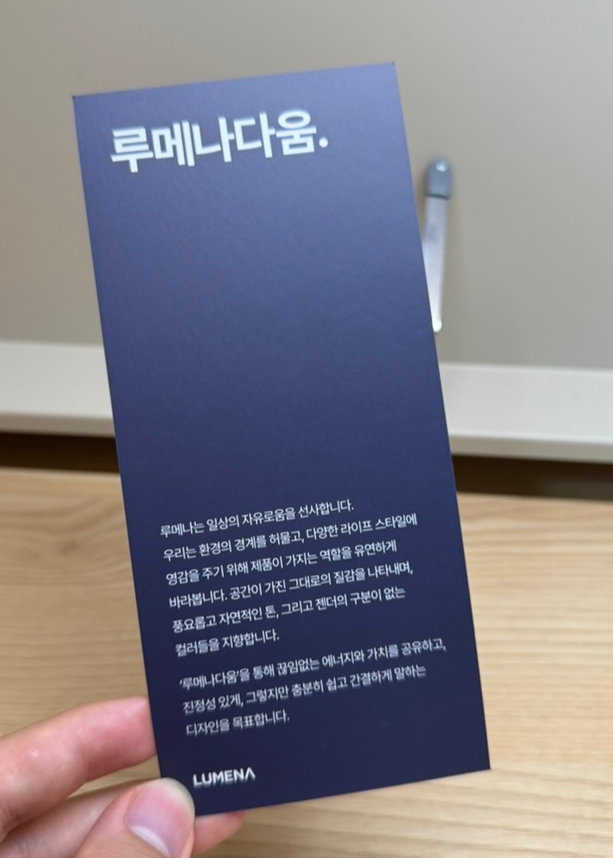 루메나다움이라는 메시지도 함께 있었다. 이를 통해 루메나라는 회사의 철학을 엿볼 수 있다.