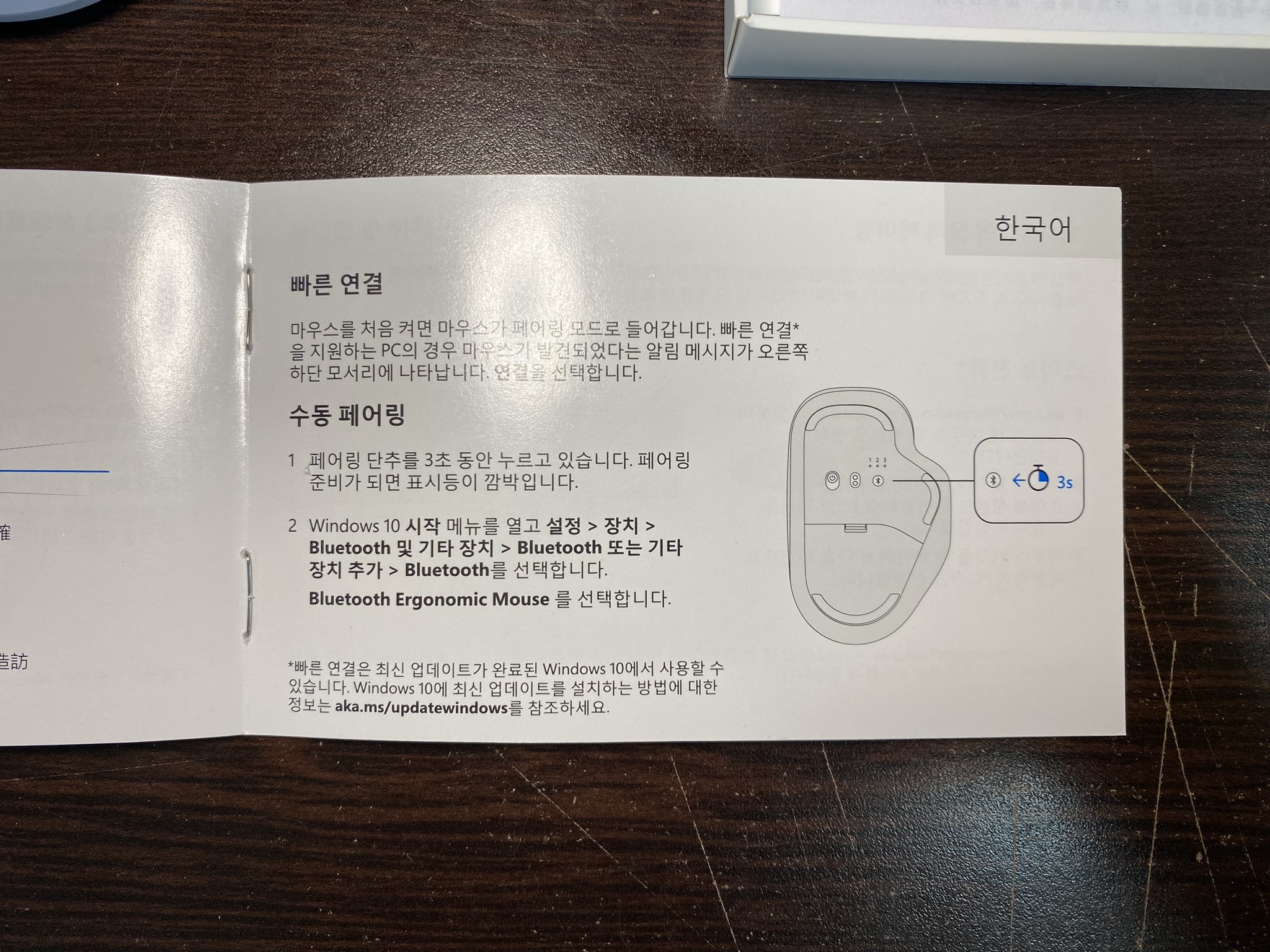 해외 직구 제품에다 2년까지 지나버린 나머지 AS는 포기했다. 새로운 마우스를 찾던 도중 마이크로소프트 제품이 AS 서비스가 좋다는 소문을 듣고 에코노믹 블루투스 마우스를 구입했다.