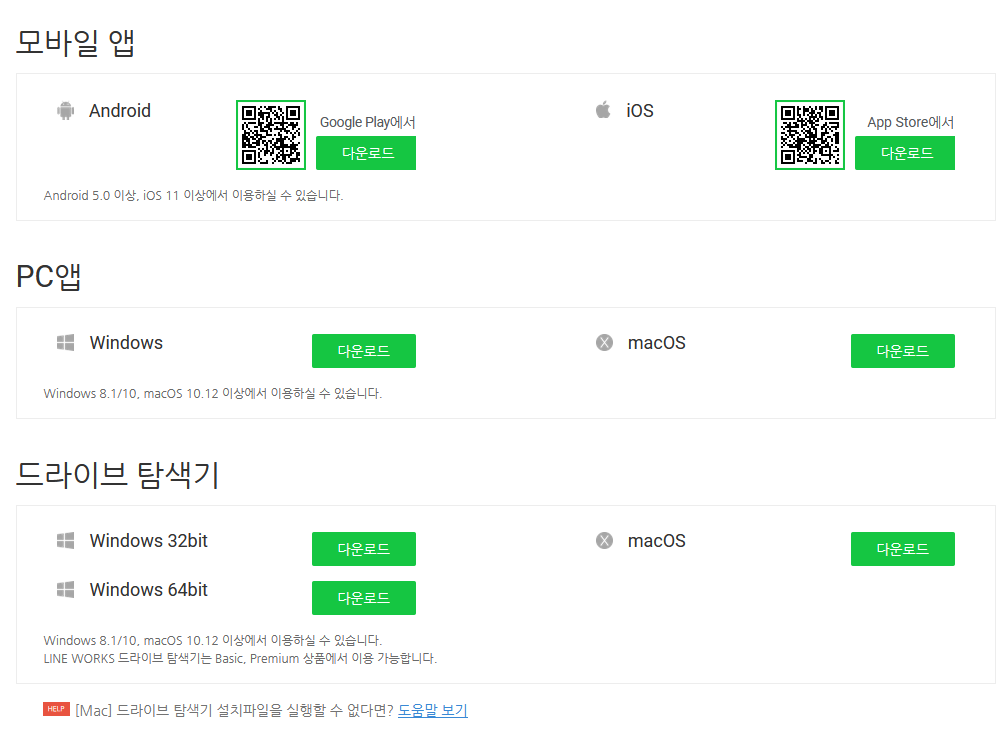 하지만, 라인 웍스 홈페이지에서는 불가능하다. 별도로 프로그램을 설치하라는 소리인데 이게 말인가?
