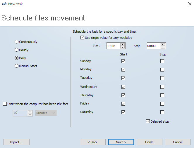 계속할 건지, 시간별 또는 수동 시작을 설정할 수 있다. 시간대 설정, 요일 설정도 가능하니 이런 부분도 진짜 마음에 든다.