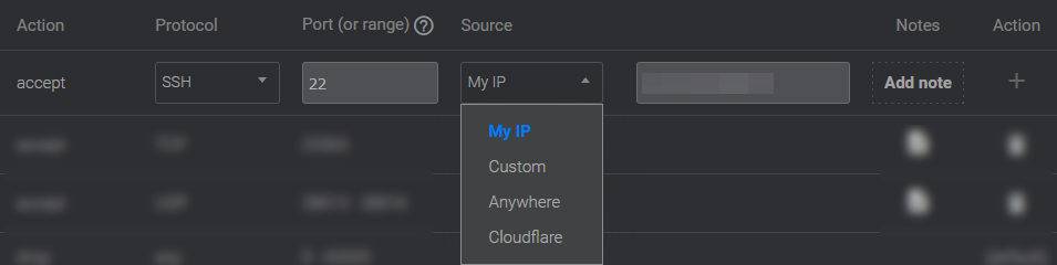 우리가 규칙에서 선택할 수 있는 건 Protocol과 Port, Source와 Notes이다.
