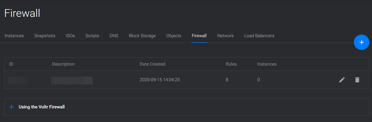 별도의 장비에서 돌아가다 보니 VM의 성능 부분과 보안 부분에서 더 큰 이득을 볼 수 있기 때문에 무료로 제공되는 Vultr 방화벽을 사용하자.