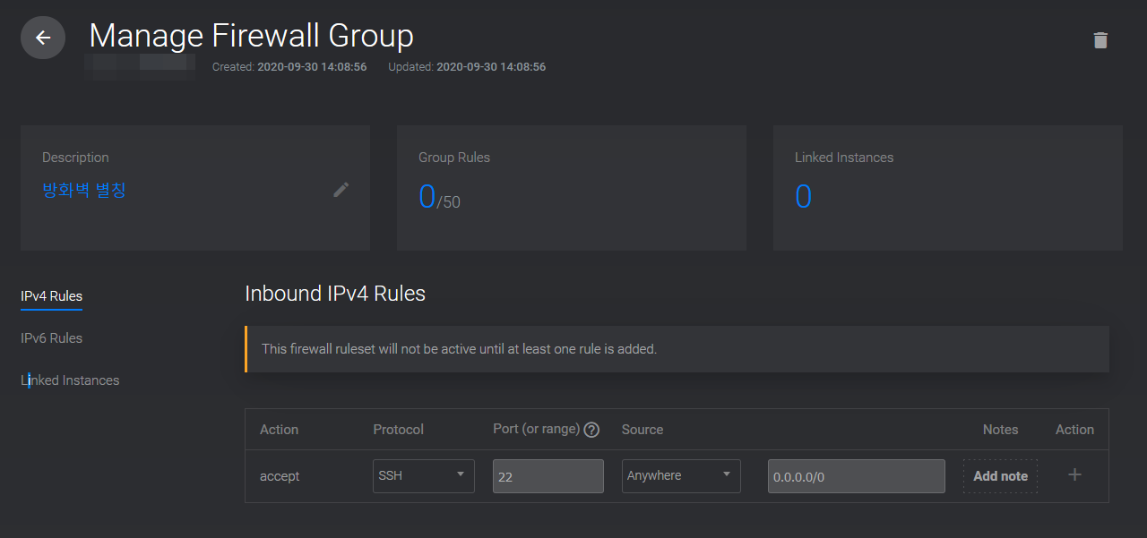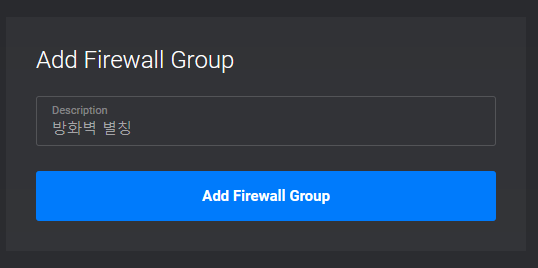 Add Firewall Group 버튼을 클릭하여 방화벽을 생성한다.