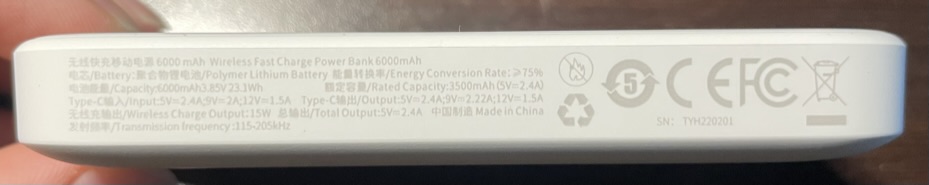 배터리의 용량은 3.85V, 6000mAh(5V 3500mAh)다. 아이폰 14 기준으로 약 1번 충전 가능할 것으로 보인다.