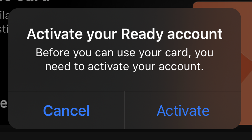 앱에서 카드 등록을 할 수 있다. Activate card를 클릭하여 카드를 활성화하는 단계로 넘어간다.