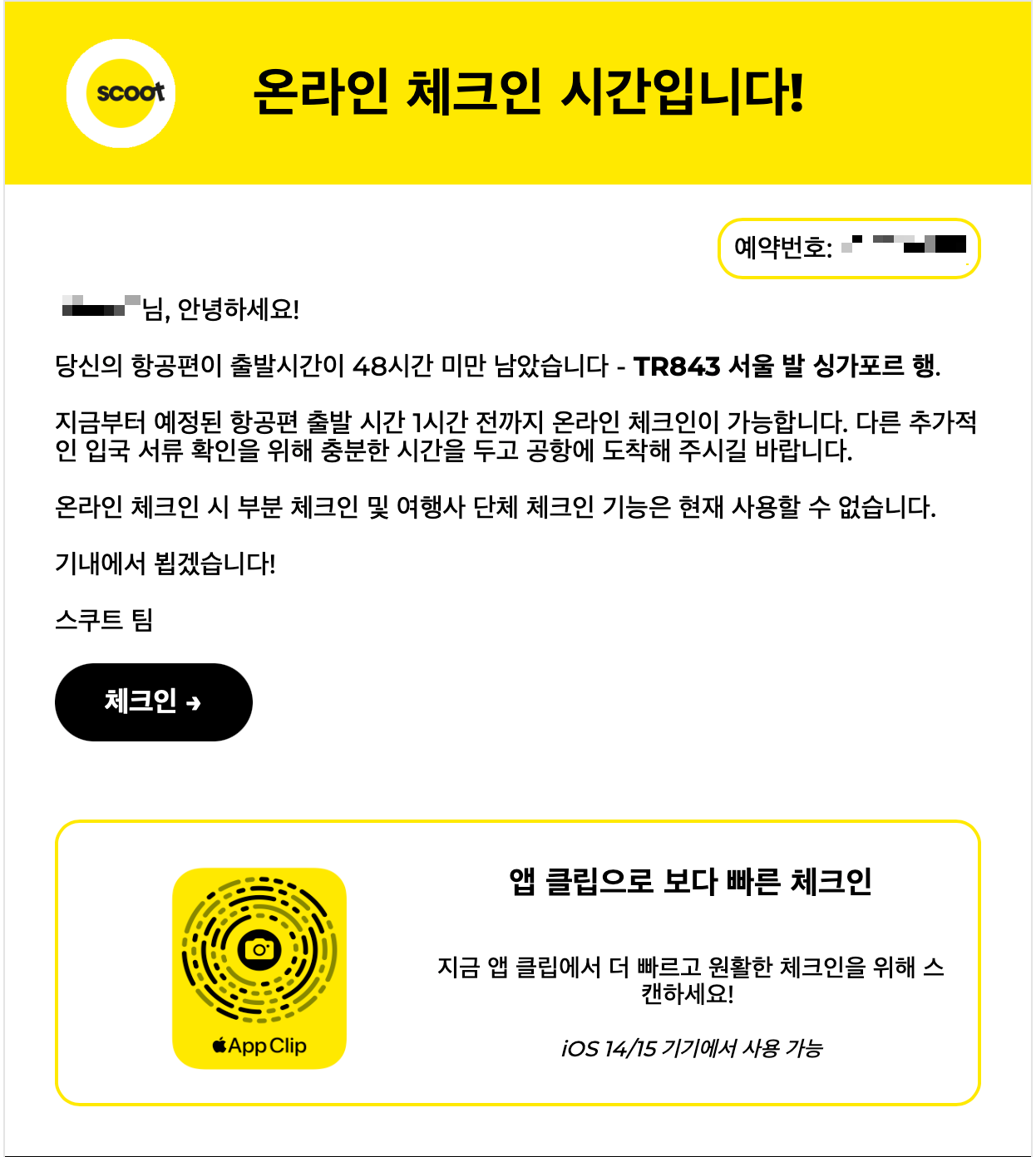 스쿠트 항공은 현장에서 체크인하는 방법과 웹에서 미리 체크인을 할 수 있다.