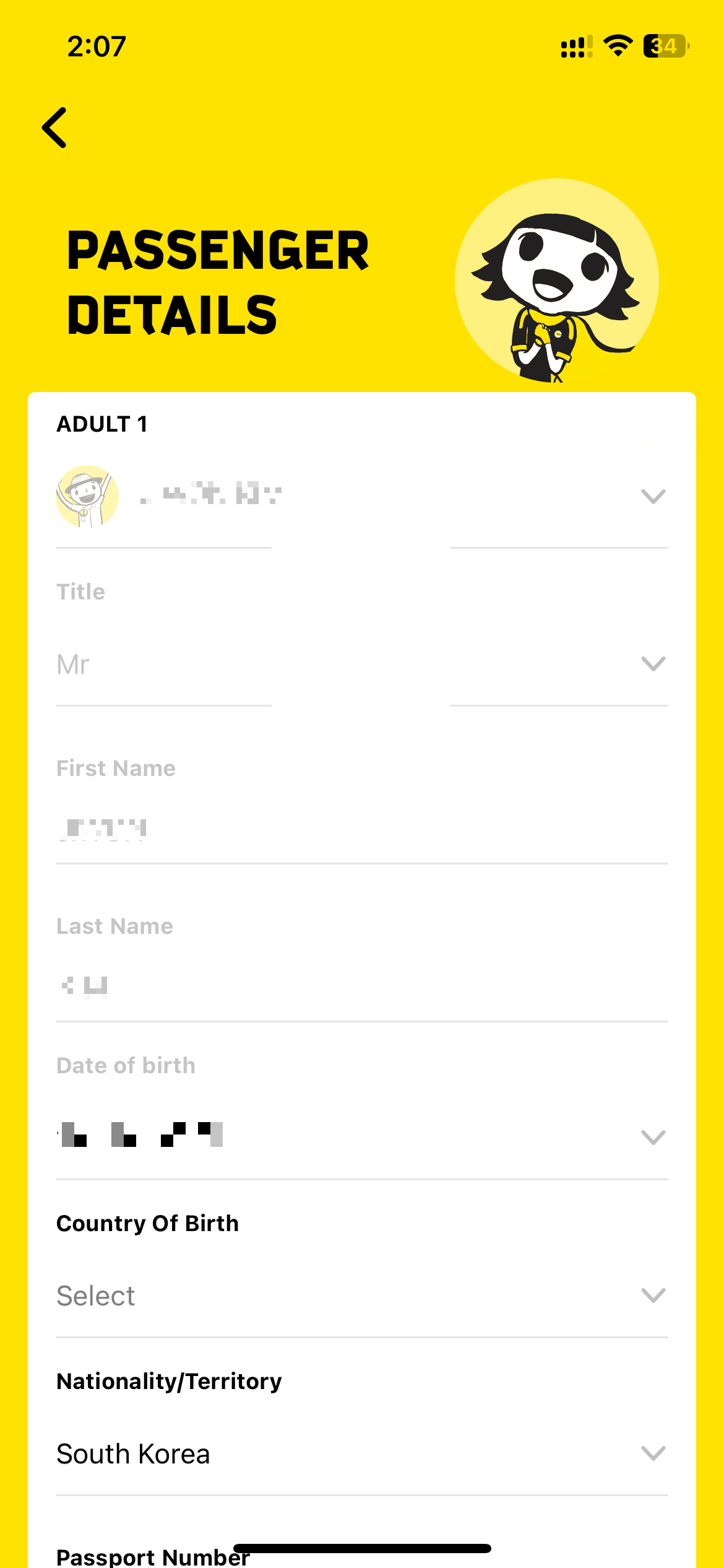 각 승객별 입력해야 할 정보는 다음과 같다.