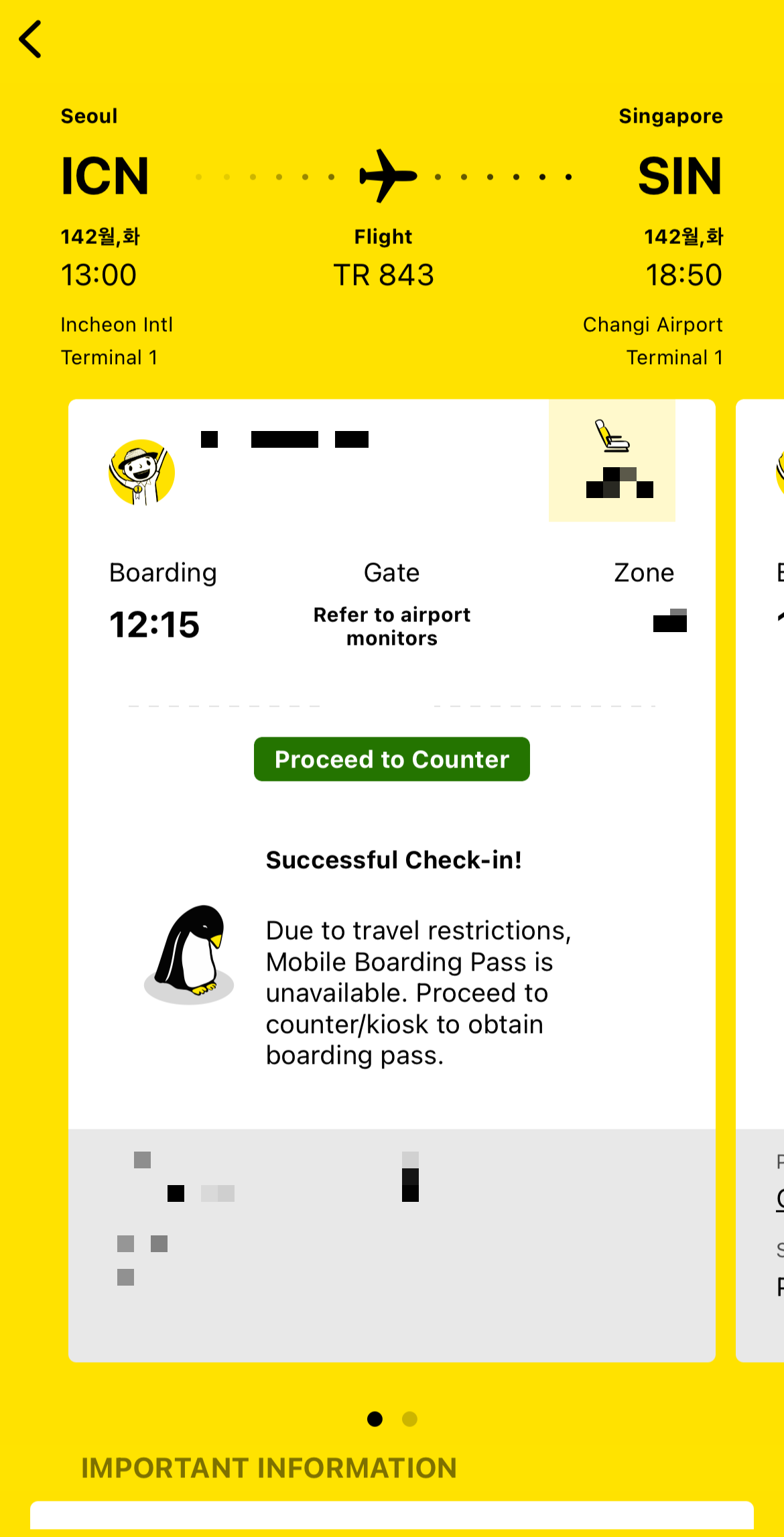 이렇게 보딩 패스가 뜨면 체크인이 완료된 것이다.
