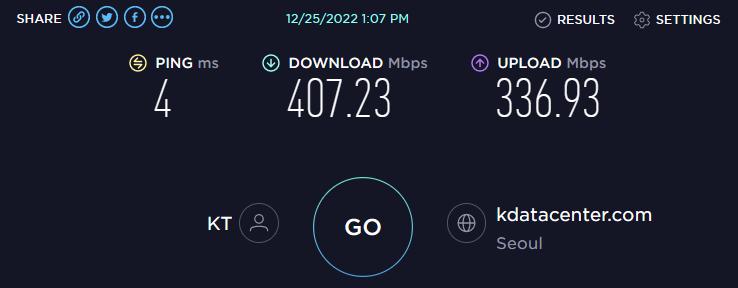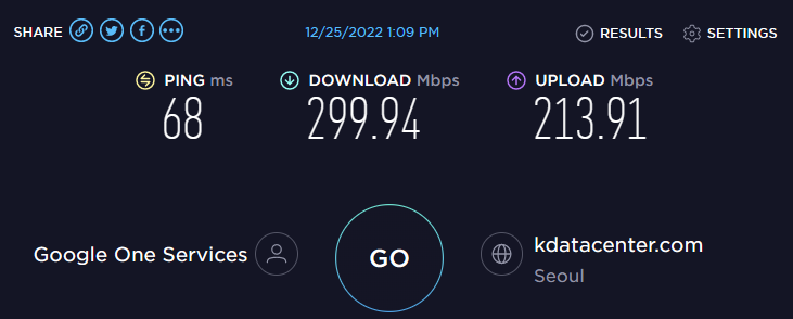 서버는 speedtest.net의 kdatacenter.com이다.