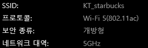 스타벅스에서는 KT(스타벅스)의 공용 와이파이를 누구나 사용할 수 있다.