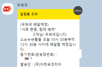 그러던 중 금요일에 우체국으로부터 문자가 날아왔다.