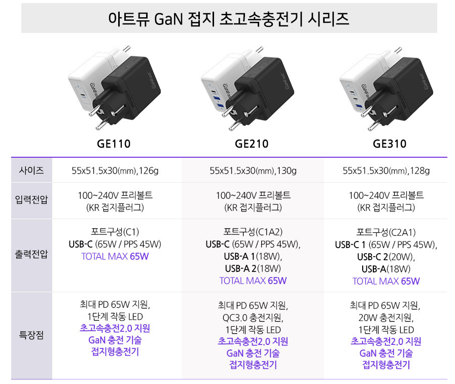 USB PD 65W PPS GaN 접지 멀티 초고속 충전기 GE310 : artmu