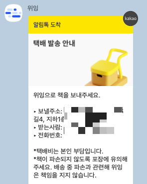 신청을 완료하면 카카오톡으로 관련 안내 사항이 전송된다. 이 안내에 따라 책을 보낼 주소를 확인한 뒤, 해당 주소로 택배를 보내면 된다.