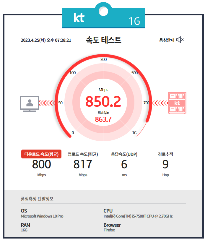 인터넷 회선이나 본인 위치마다 결과가 상이할 수 있습니다.