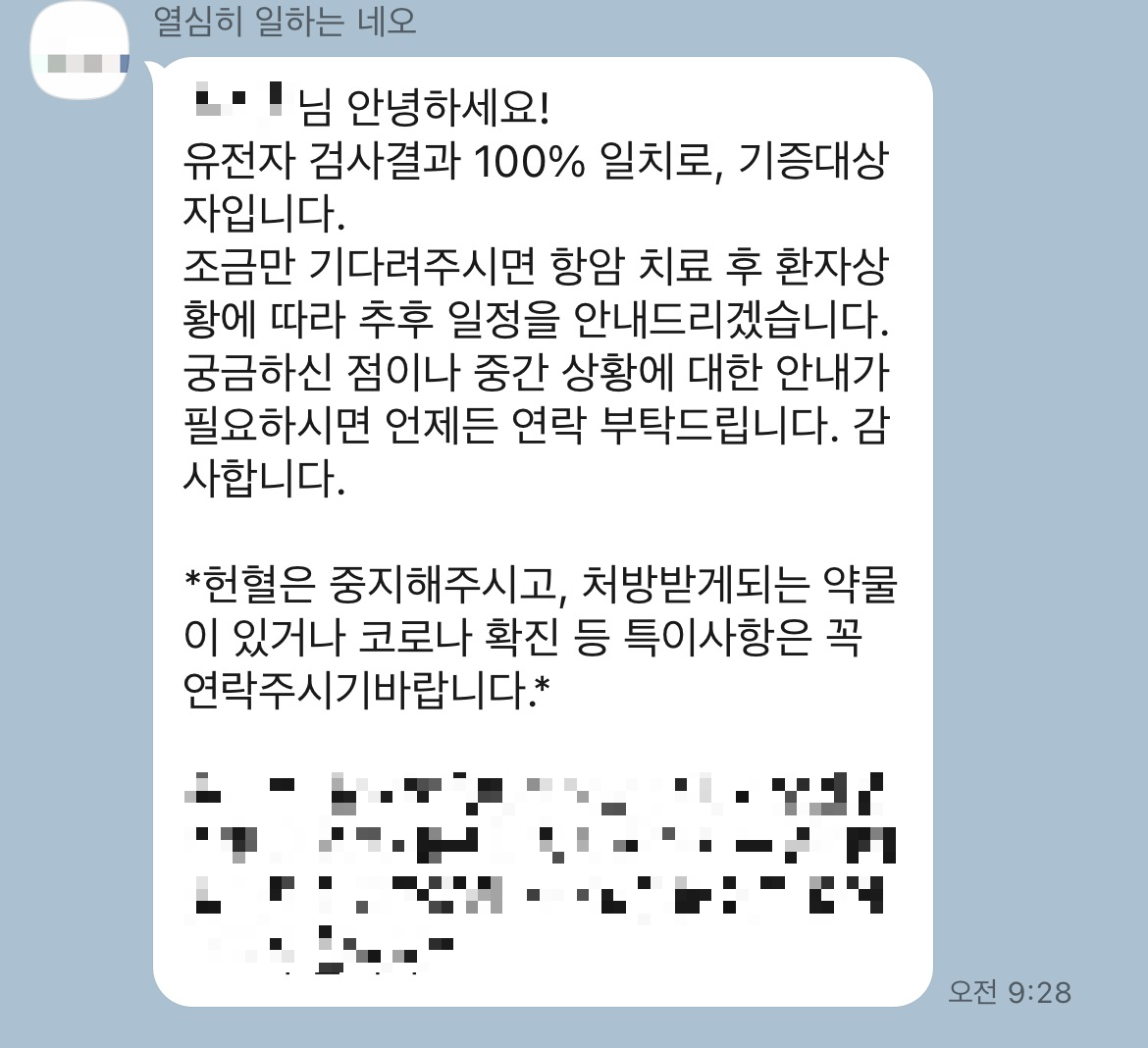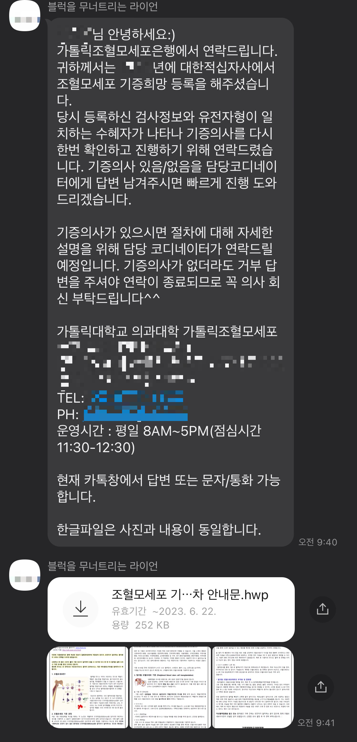 (사실 필자는 22년도에도 이런 연락을 받았다. 당시에도 기증 절차를 진행해서 서울성모병원에서 유전자 검사를 했었는데 해당 유전자 정보가 없었나..?)