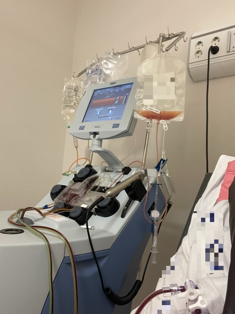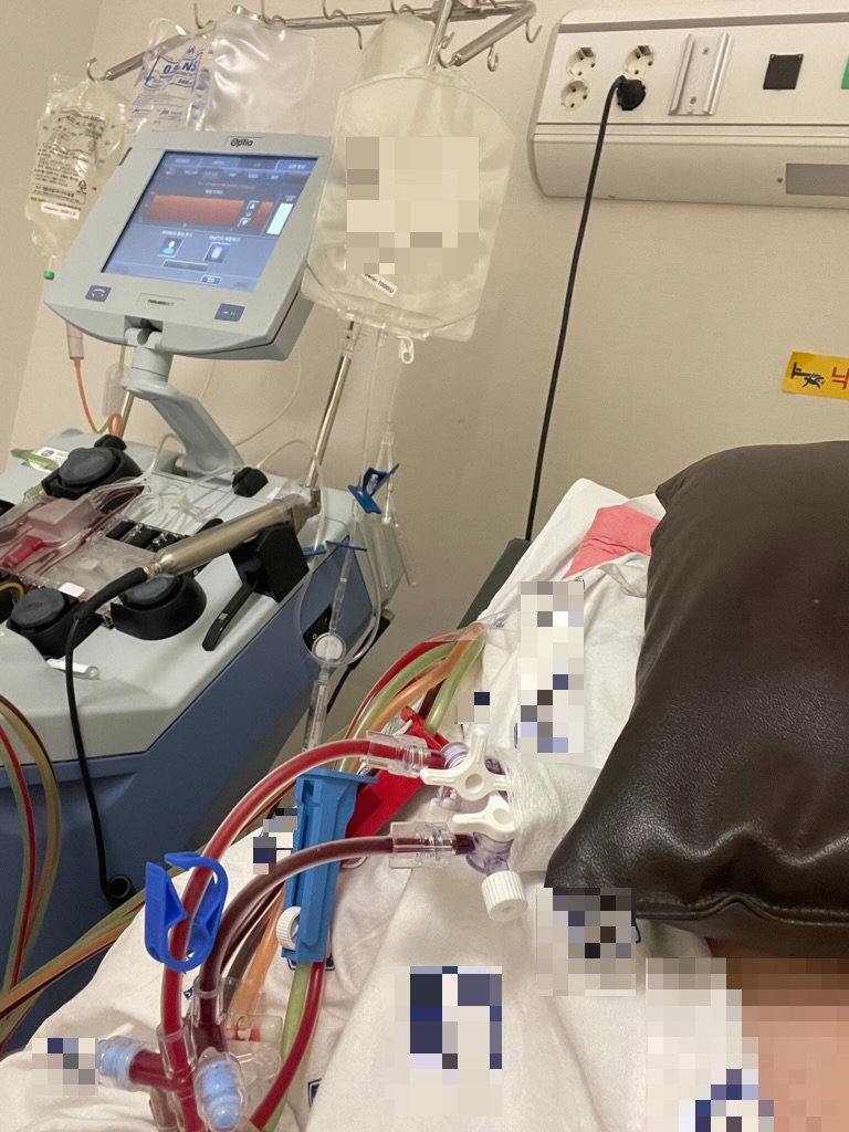 국소마취를 하고 심장 부근에 있는 큰 정맥에 관을 삽입하는 작업을 진행한다. 마취를 진행하기 때문에 통증은 전혀 느껴지지 않지만, 관을 2번 정도 안으로 밀어넣는 느낌은 그대로 느껴진다. 아프진 않고 불편하다.