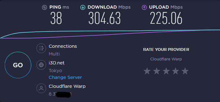 > Warp의 최대 속도 한계가 있기 때문에 원래 속도가 잘 나오는 구글 드라이브나 원드라이브에서는 속도 저하가 될 수 있음.