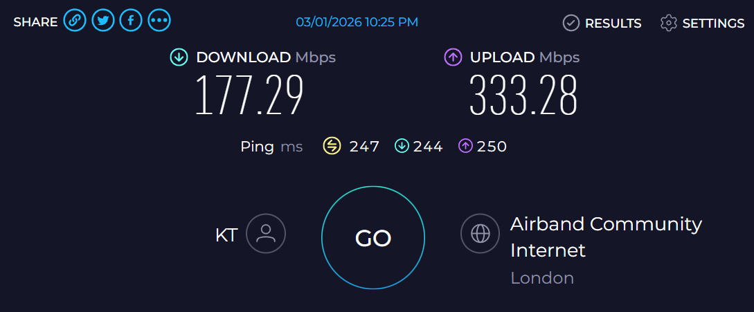 다만 업로드 속도는 100Mbps대로 제한되어 있는 듯 보였다.