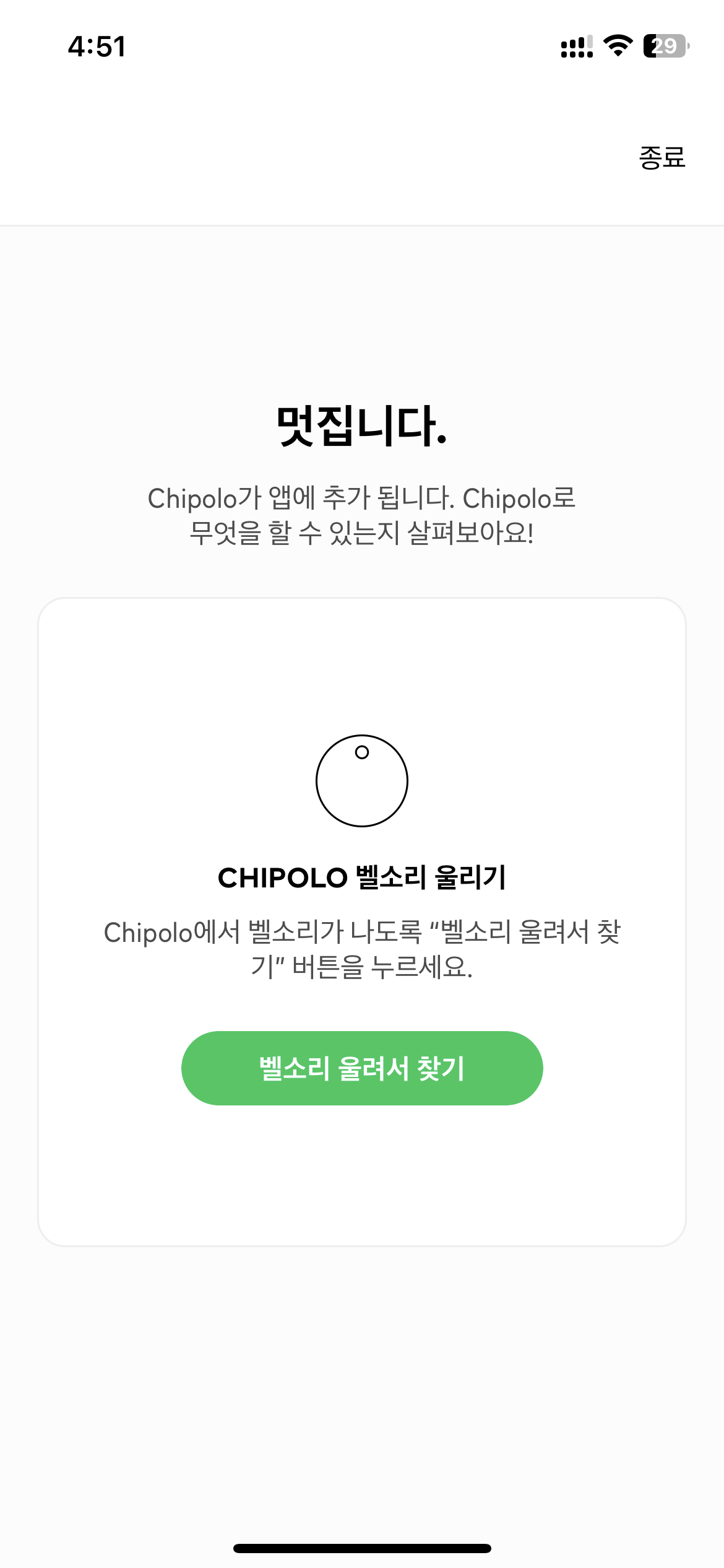 위 영상은 치폴로를 두 번 눌러서 휴대폰을 찾는 영상이다.