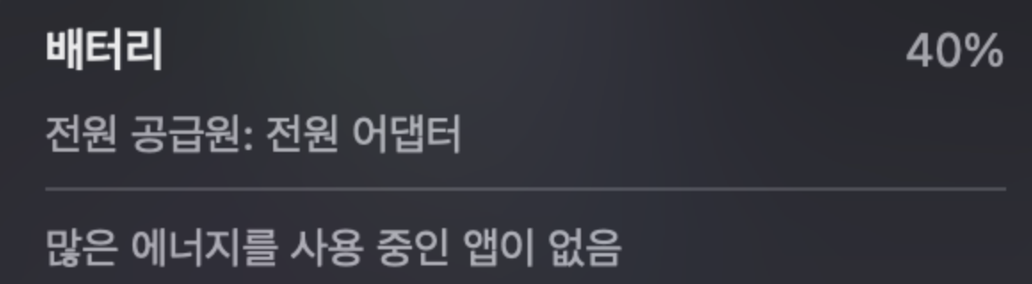 맥북 프로 M1(2020) 연결 시 충전 속도 (당시 배터리 40%)