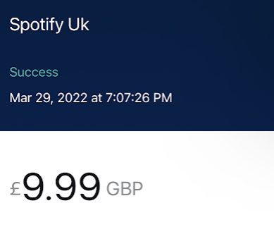 영국발 카드라서 그런지 미국 스포티파이에서는 결제가 불가능했고 영국 스포티파이에서 결제했다.