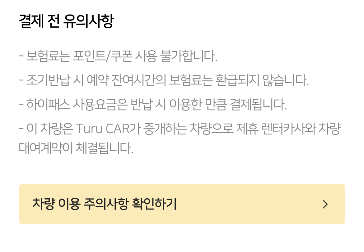 이 내용은 항상 최신 정보를 보장하지 않으므로 최신 내용 및 자세한 내용은 투루카 내 자동차표준대여약관 및 보험 상세 정보를 확인하기 바란다.