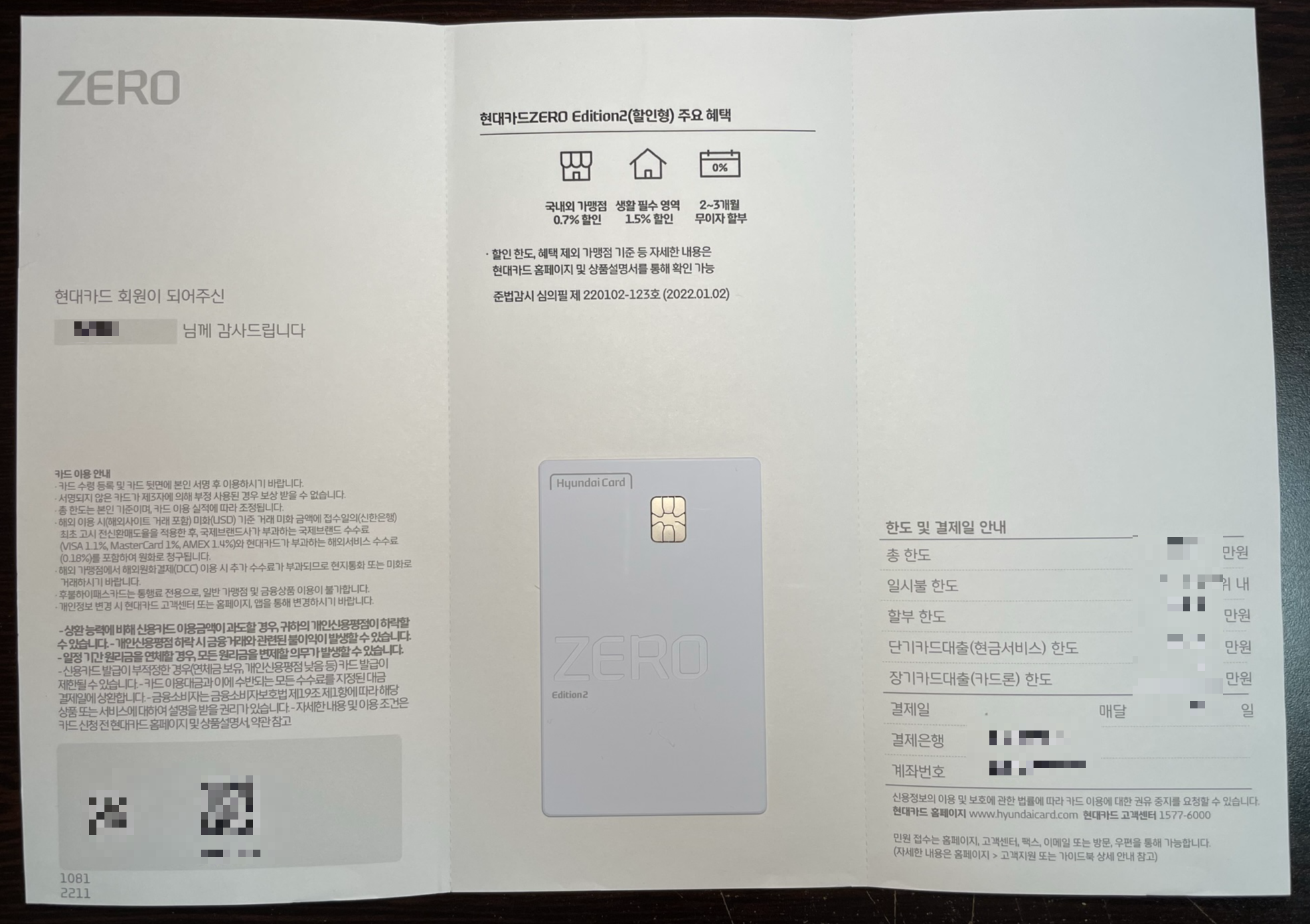 현대카드 제로 에디션 2의 디자인이 약간 변경되었다.