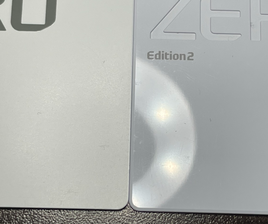 먼저 앞면을 보면 ZERO 글자가 기존에는 프린팅으로 되어 있었지만 지금은 음각 처리되어있다.