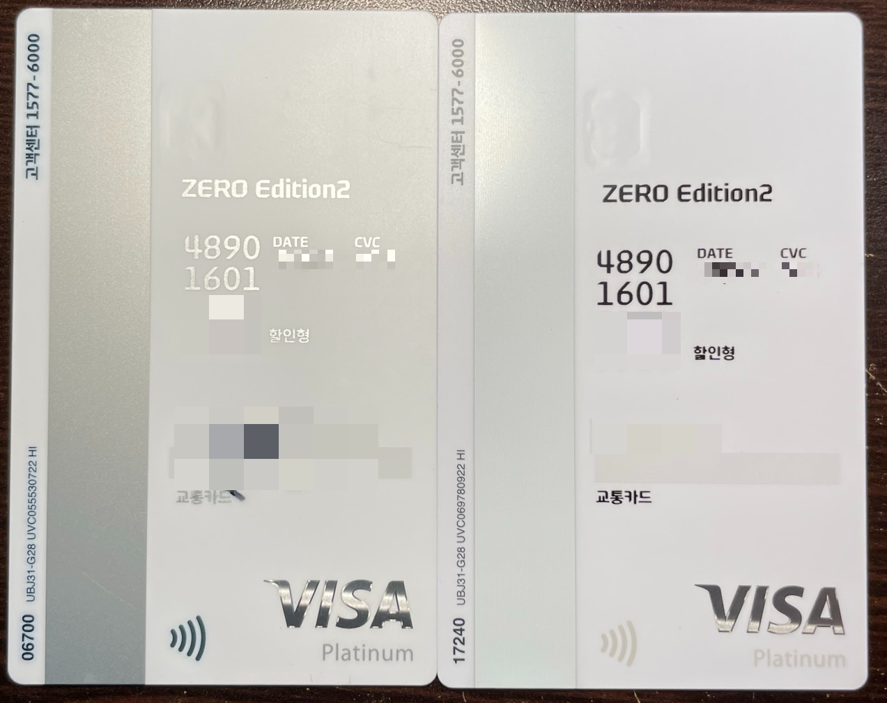 좌측이 기존에 사용하던 카드, 우측이 새로운 카드다.