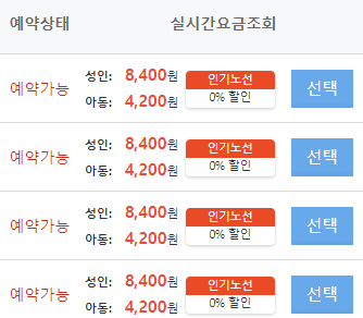 대충 뭐... 이런 가격이 나온다. 주요 시간대의 경우 할인이 아예 없다고 보면 된다.