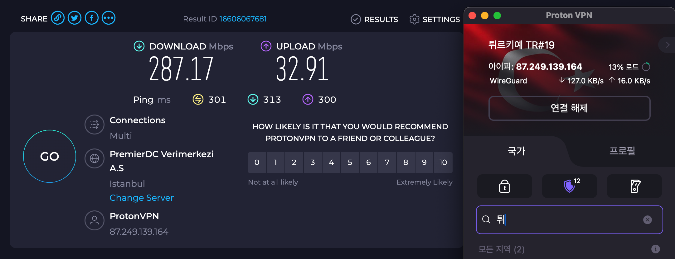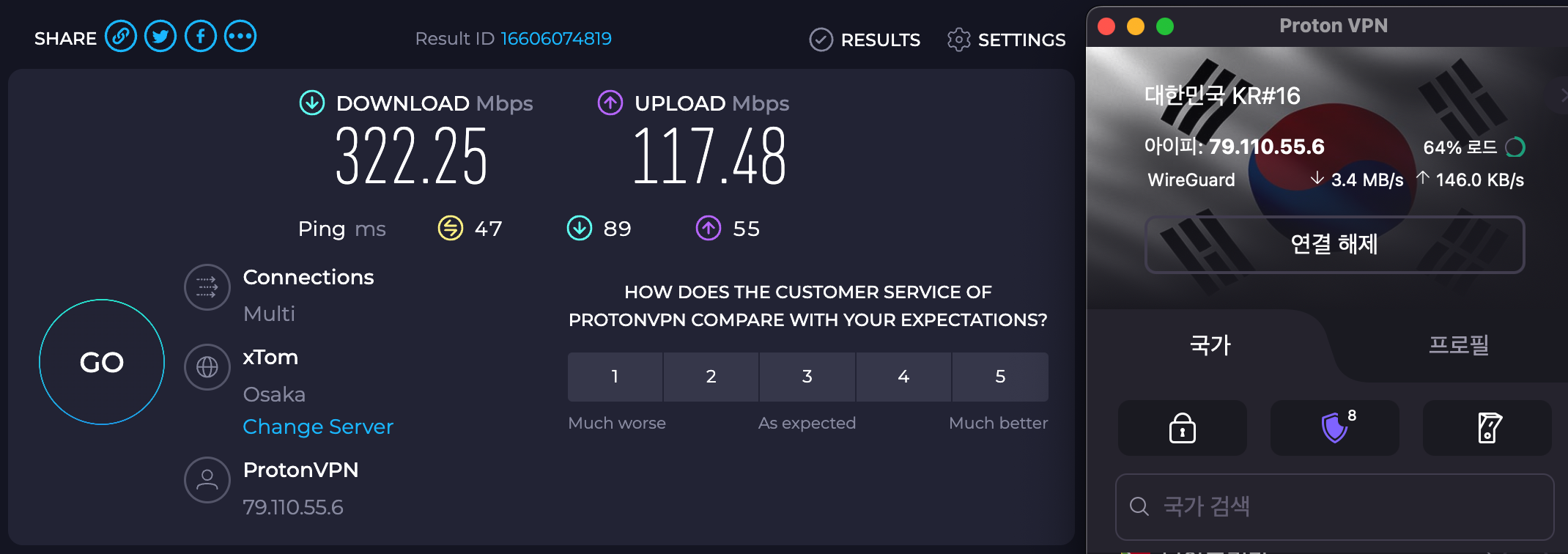 결과를 보았을 때 다운로드 속도는 비슷비슷했으나 업로드 속도는 NordVPN이 훨씬 빨랐다. 업로드가 주된 목적이라면 NordVPN을 이용하시길 강력히 권장드린다.