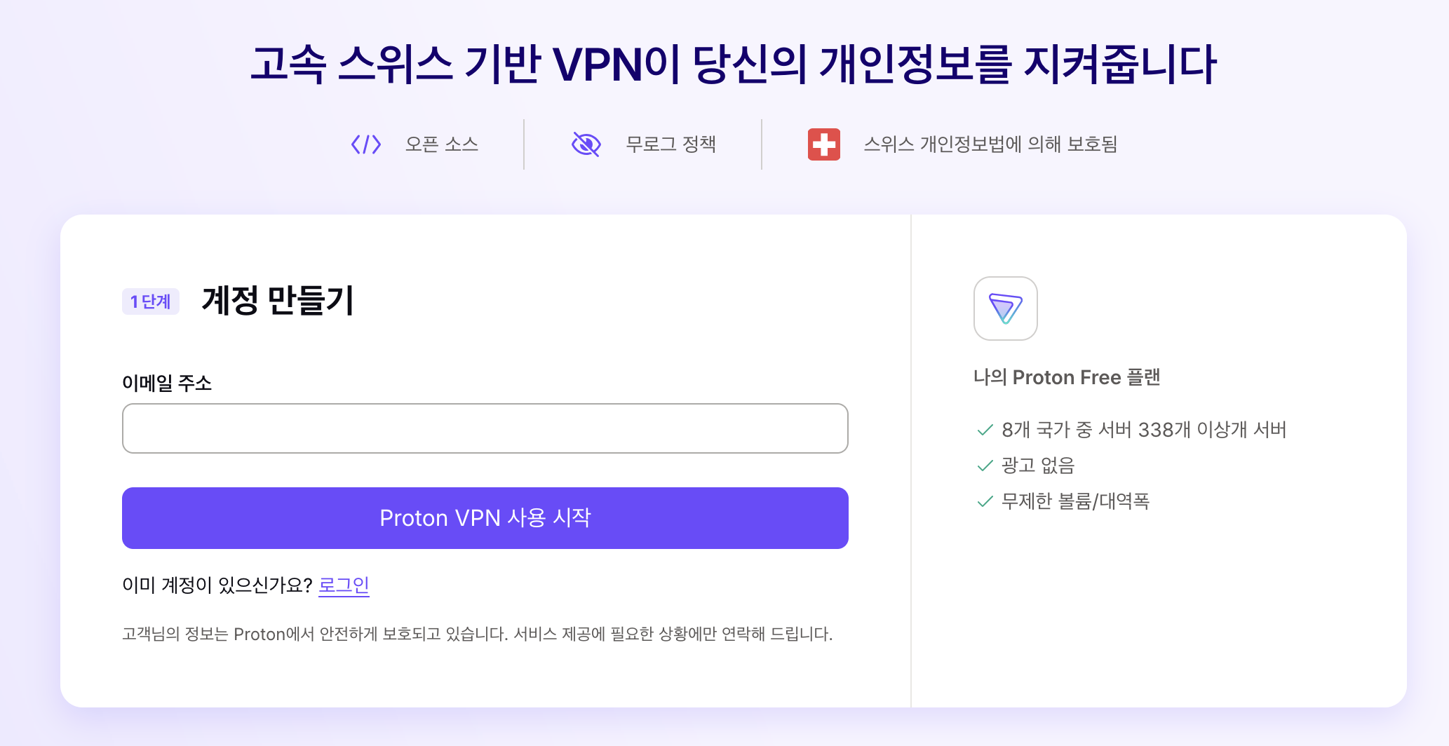 Proton VPN에 가입하려면 Proton VPN 공식 웹사이트에 접속하면 된다. 가입 과정에서 즉시 결제를 하지 않고도 Free 요금제를 선택할 수 있어, 부담 없이 시작할 수 있다. 또한, 30일 환불 보장이 제공되므로 결제에 대한 부담도 덜 수 있다.