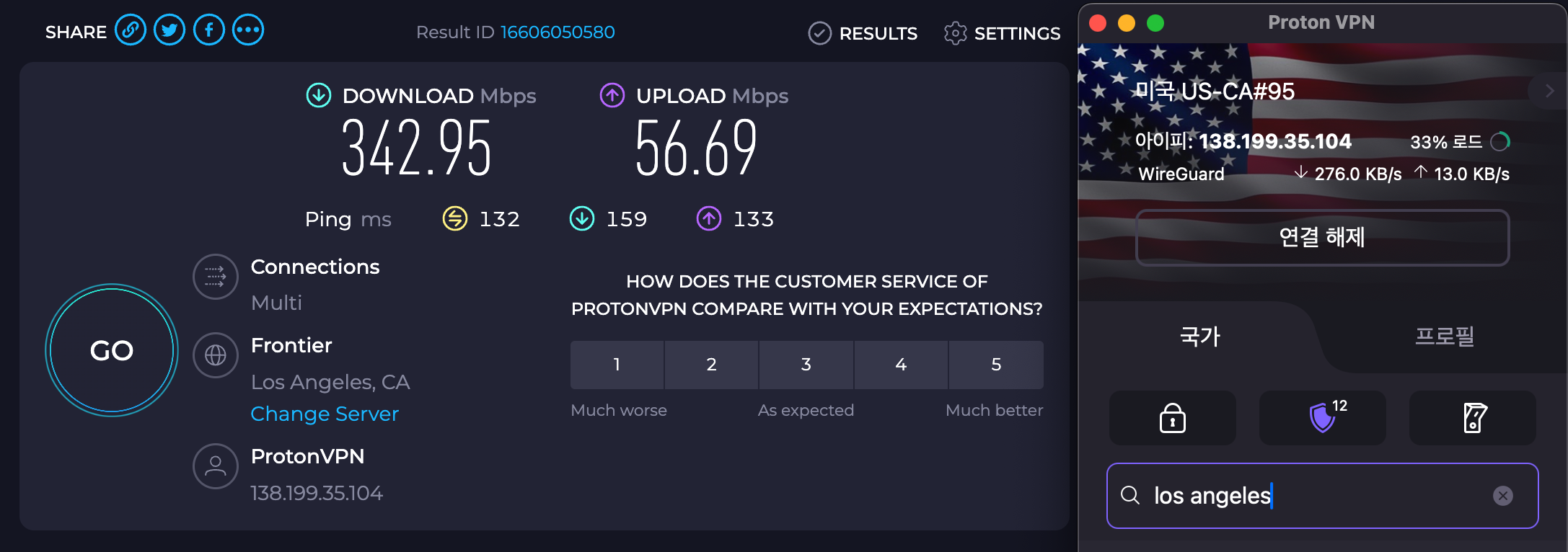 무료 서버는 주로 일본으로 연결되기 때문에 굳이 미국으로 우회하지 않겠다. 무료 서버 측정 이후 유료 요금제를 결제하여 다시 테스트를 진행하였다.
