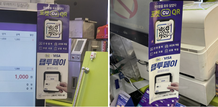 CU POS에 부착된 비자 탭투페이 광고 (출처: 내 마음대로 블로그)