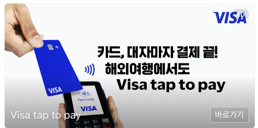 아무래도 국내엔 가맹점이 별로 없어서 그랬는지 해외에선 비자 탭 투 페이를 쓰라는 광고를 올렸다.