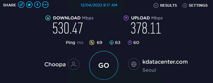 요즘 Speedtest.net의 kdatacenter.com 서버 상태가 정상이 아닌 듯하다. 사람이 너무 몰리는 건가?