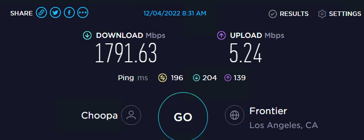 다른 로스앤젤리스 서버도 업로드 속도가 낮았다. 왜 비대칭 속도가 나오는지는 잘 모르겠다.