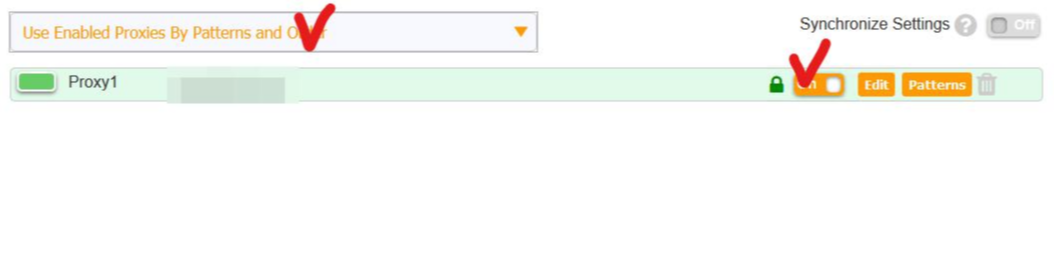 Use Enabled Proxies By Patterns and Order을 했는지, 잠금 표시가 On 상태인지 확인한다. (사용할 프록시의 잠금 표시)