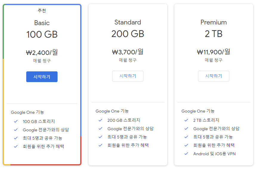 100GB와 200GB 상품은 그냥 용량 그 자체만 제공하지만, 2TB 요금제부터는 Android와 iOS에서 VPN을 사용할 수 있다.