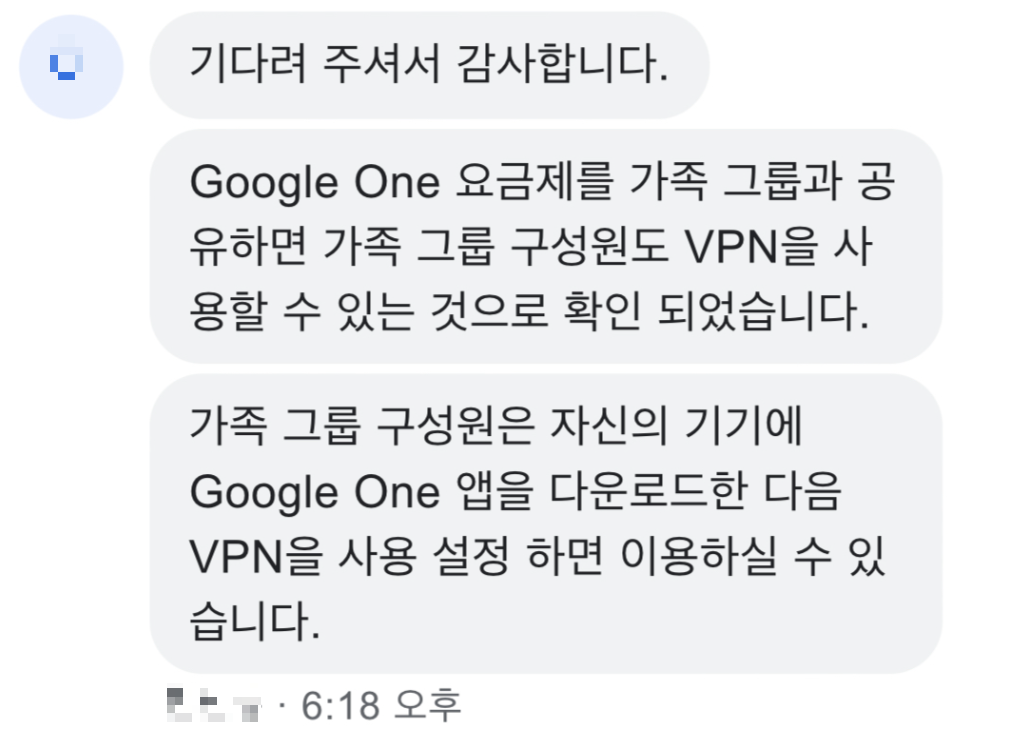 구글 One은 개인 저장공간을 가족과 공유가 가능하다. 그럼 내 가족 구성원들도 VPN 기능을 사용할 수 있을까?