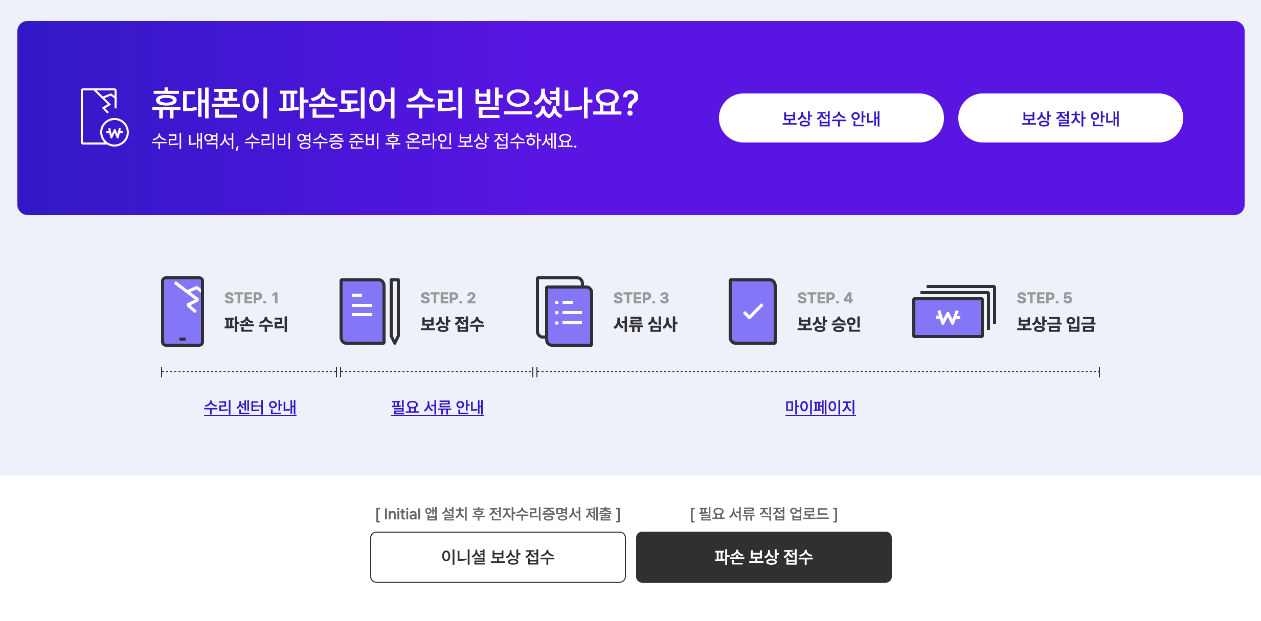 간단한 안내가 있다. ‘파손 보상 접수’ 버튼을 클릭한다.