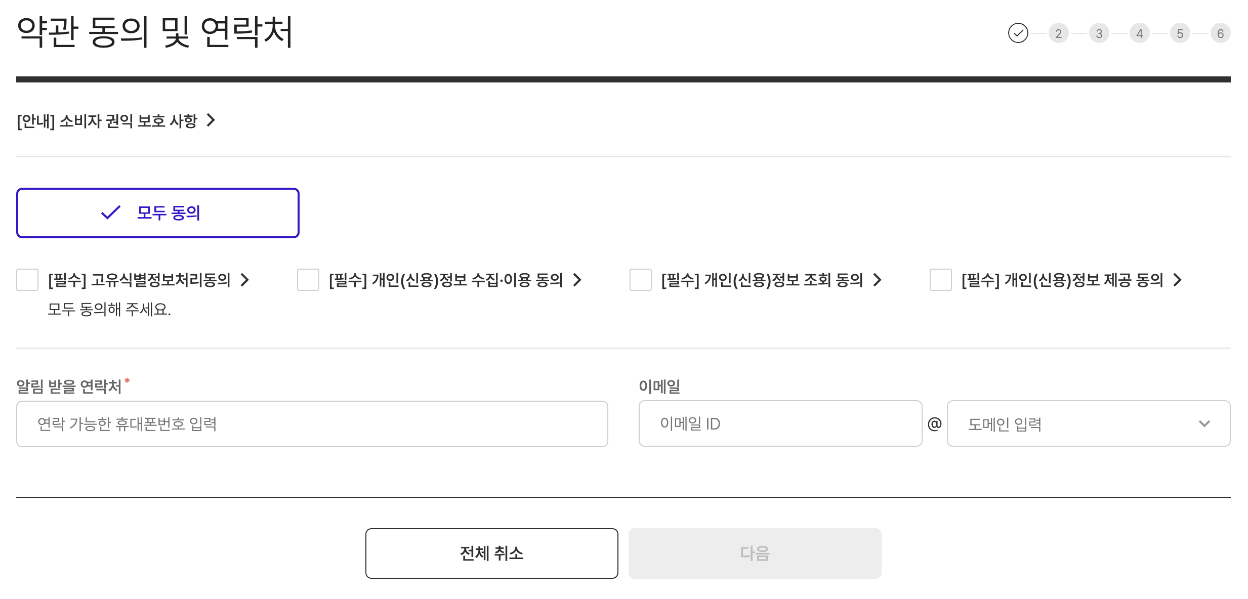 약관 동의 및 연락처 입력